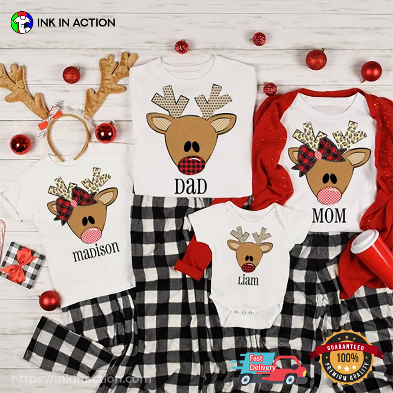 Personalized Name Christmas Family Deer Matching T-shirt