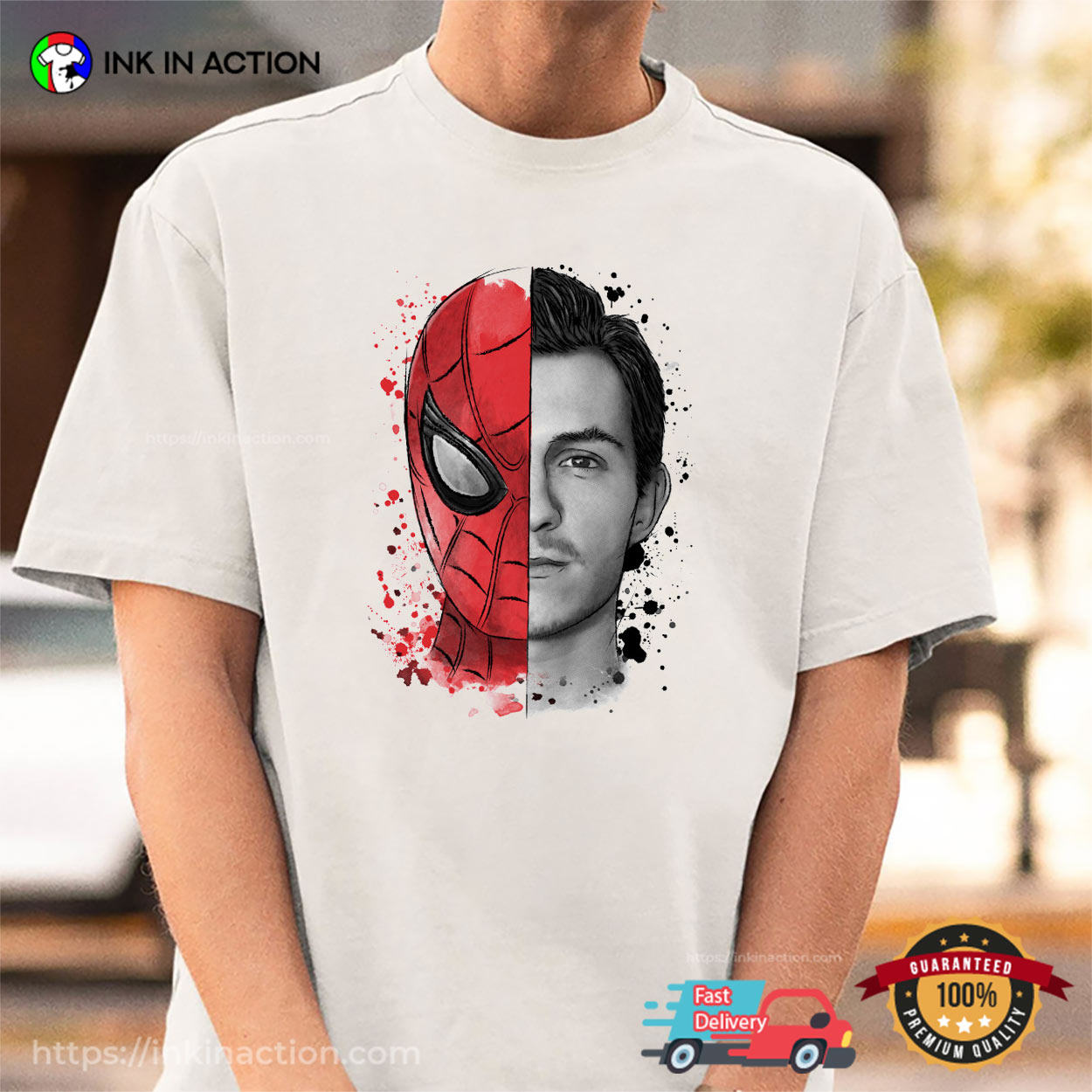 Peter Parker And Spiderman Graphic Art T-shirt