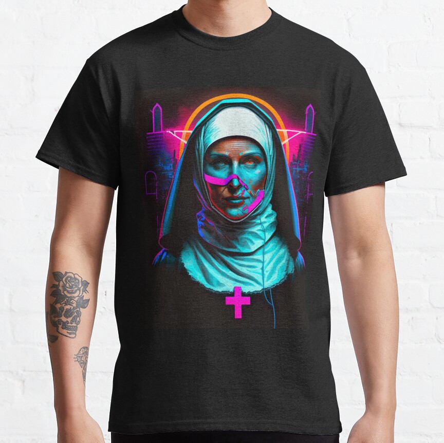 Portrait Of A Creepy Nun Cyberpunk Vuitino Shirt
