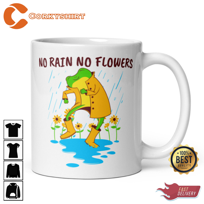 Positive Frog No Rain No Flower Inspirational Coffee Mug