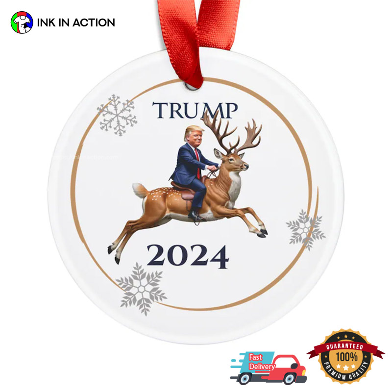 President Trump Riding Deer 2024 Christmas Ornament