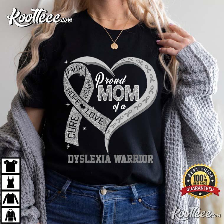 Proud Mom Of A Dyslexia Warrior Ribbon Heart T-shirt