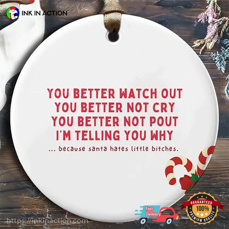 Santa Hates Little Bitches Funny Christmas Ornament