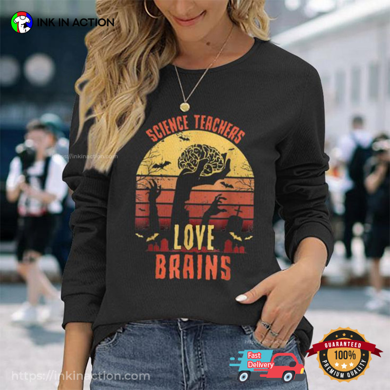 Science Teachers Love Brains Teachers Halloween T-shirt