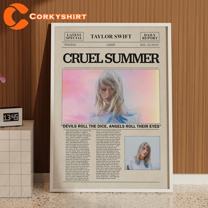 Taylor Swift Lover Cruel Summer Album Cover Newspaper Print Wall Art Poster