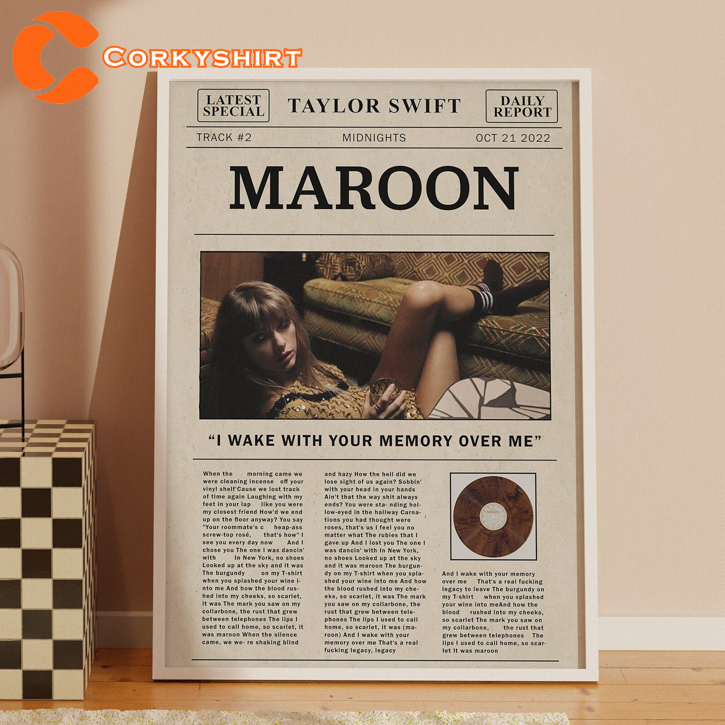 Taylor Swift Retro Maroon Lyric Newspaper Print Wall Art Poster