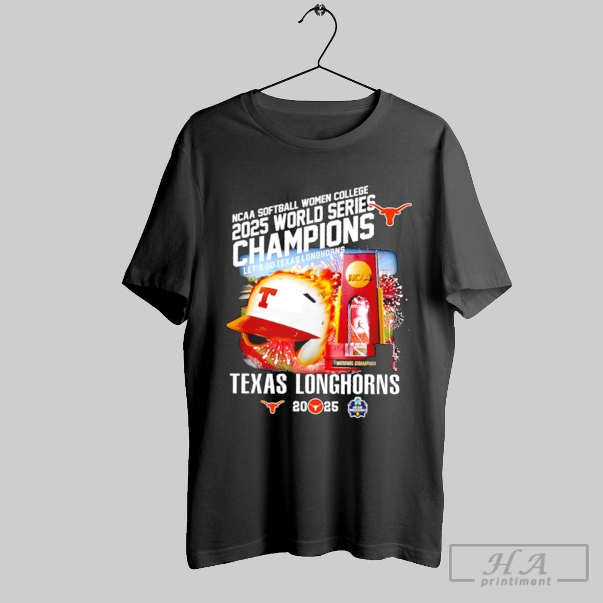 Texas Longhorns Ncaa Softball Women College 2025 World Series Champions Helmet Graphic Shirt