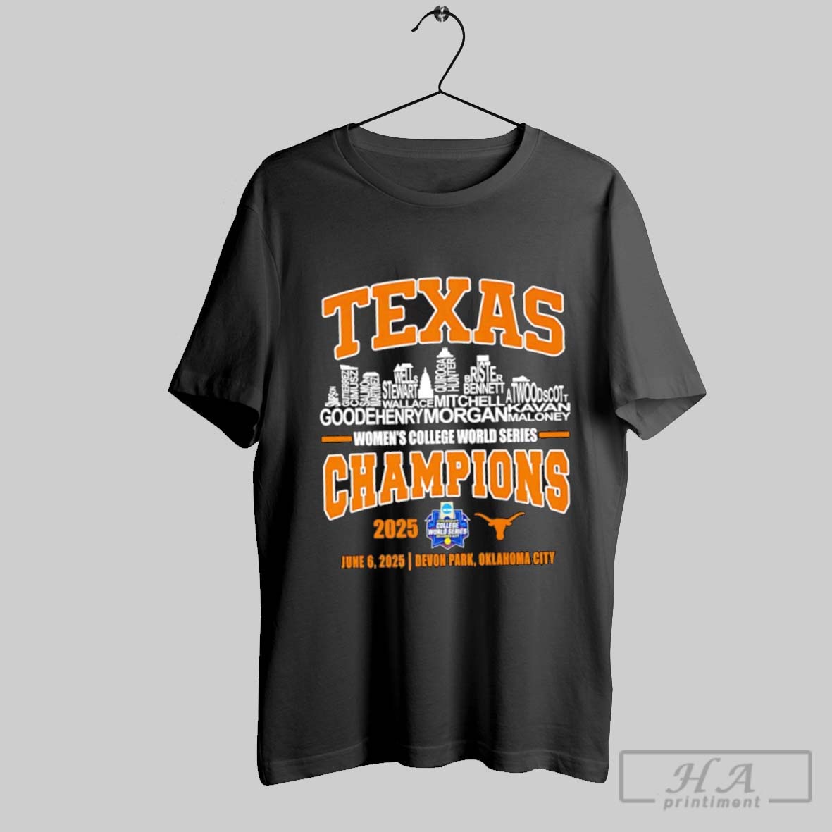 Texas Longhorns Womens College World Series Champions 2025 Names Player Skyline Shirt