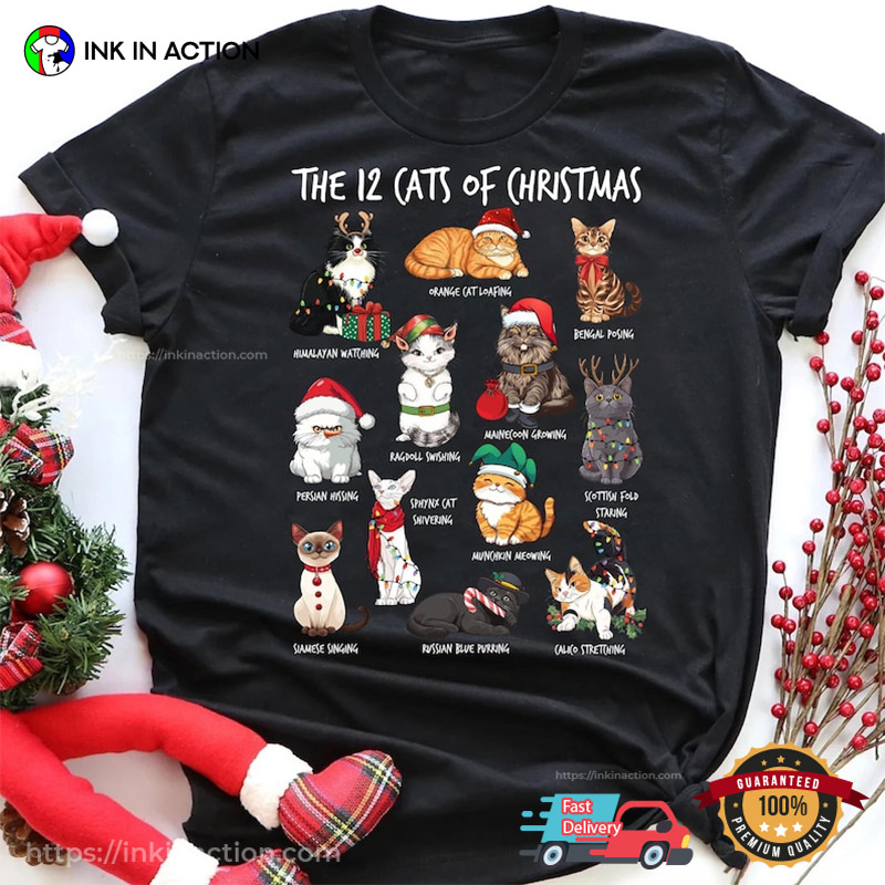 The 12 Cats Of Christmas Adorable Cats T-shirt