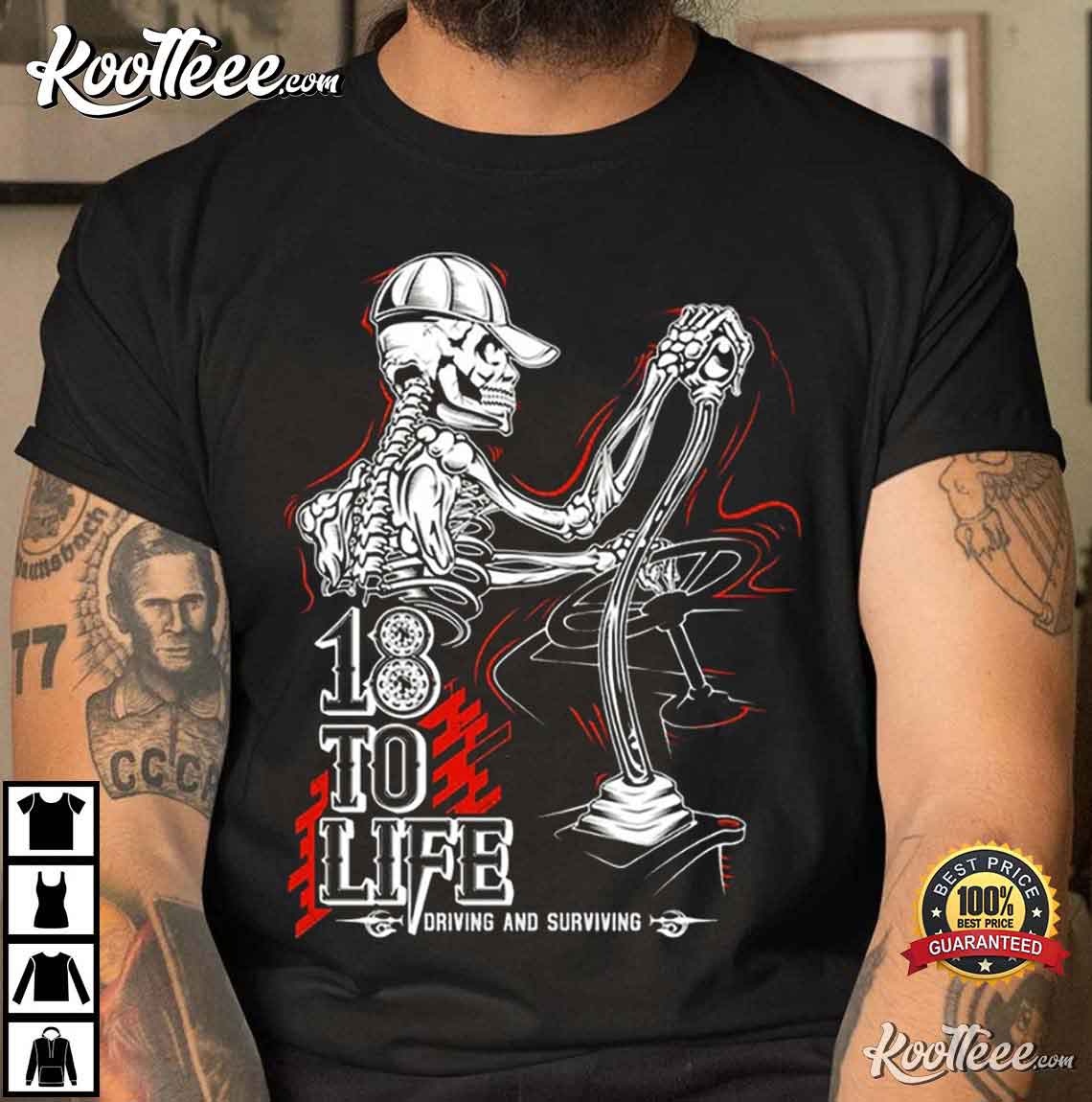 Trucker Gift 18 To Life Driving And Surviving Skeleton T-shirt