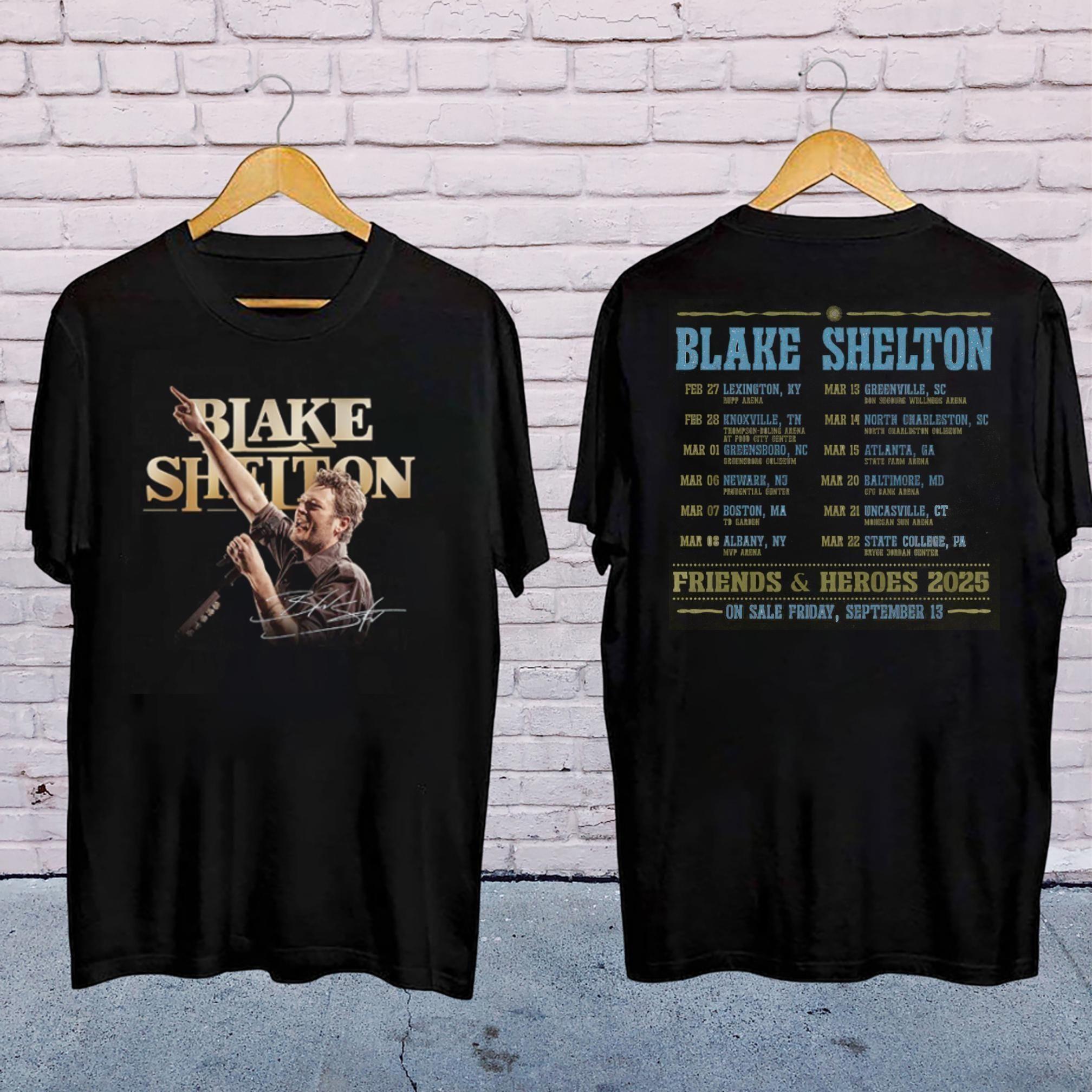 Country Music 2025 Blake Shelton Friends And Heroes Tour Double Side Vuitino Shirt
