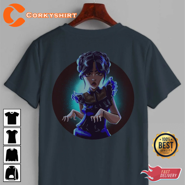 Animated Jenna Ortega Wednesday Addams Graphic T-shirt Design